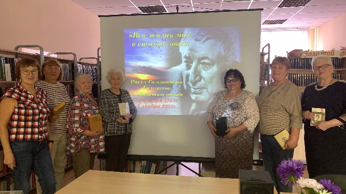 В рамках празднования 100-летия со дня рождения дагестанского поэта Расула Гамзатовича Гамзатова в Салымской поселенческой модельной библиотеке им. А.С. Тарханова прошла музыкально-поэтическая гостиная «Вся жизнь моя – в стихах моих». На мероприятие были приглашены участницы клуба «Радость встречи».