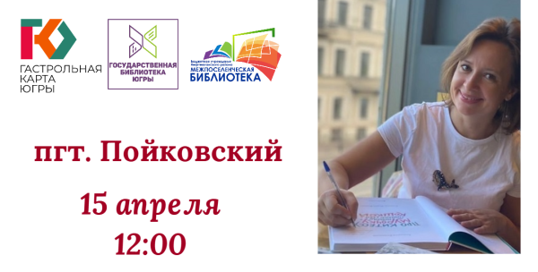 15 апреля в 12:00 в уютной атмосфере Пойковской поселенческой детской библиотеки «Радость» пройдет творческая встреча с талантливым детским писателем Анастасией Безлюдной, автором более 10 книг, и сценаристом студии «Союзмультфильм».