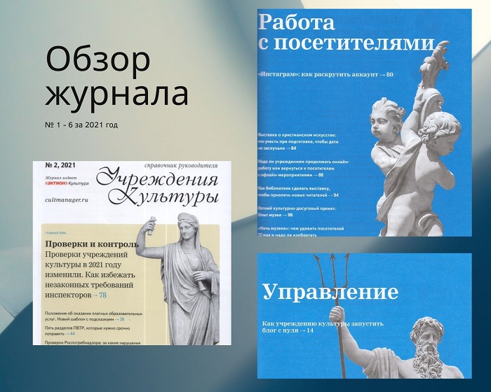 Уважаемые коллеги! Предлагаем вашему вниманию обзор журнала «Справочник руководителя учреждения культуры» (№ 1-6 за 2021 год).