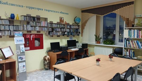 Дата открытия библиотеки: 25 сентября 1972 года. С 2003 года библиотека расположена на втором этаже МКУ «Ника», имеет два отдела: абонемент и читальный зал. В 2012 году открыт Центр общественного доступа (ЦОД), организован доступ к ресурсам Национальной электронной библиотеки, электронной библиотеки Литрес.