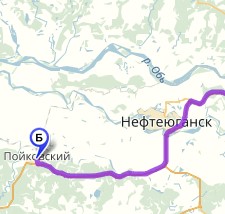 Дорога из Нефтеюганска в Пойковский имеет длину 56 км.Городское поселение Пойковский. 50 лет // Пойковский. Одной судьбой с тобой / Администрация Нефтеюганского района; Администрация гп. Пойковский; Департамент культуры и спорта Нефтеюганского района, 2017. – 98 с.