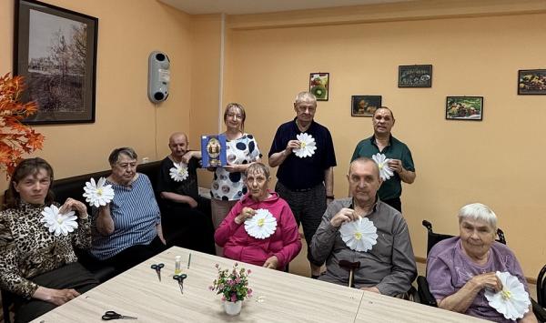 Накануне праздника жильцы социального центра собрались, чтобы принять участие в мастер-классе по изготовлению ромашки из бумаги и подарить ее на счастье своим друзьям, своей семье. Ромашка - символ Дня семьи, любви и верности. В этот день плетут венки из ромашек, дарят букеты и открытки с изображением ромашек – их прозвали «февроньки».