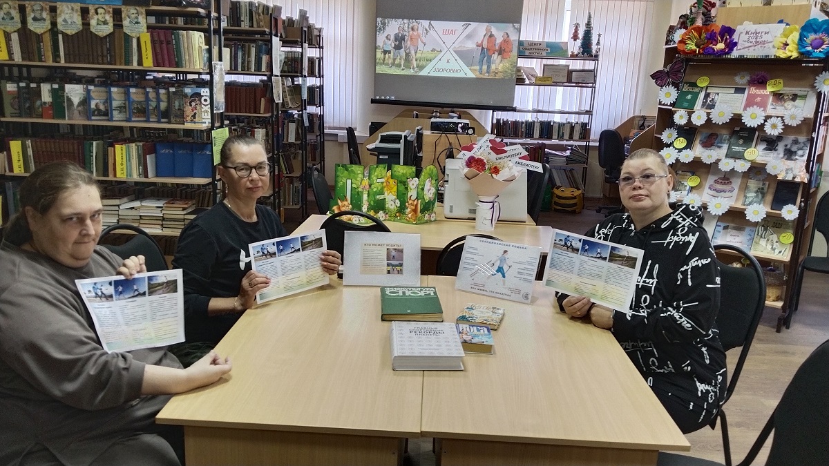 В начале встречи библиотекарь рассказала об истории возникновения скандинавской ходьбы, познакомила с литературой и периодикой, где подробно описывалась медицинская польза данного вида тренировок, рассказывала о заболеваниях, с которыми помогает бороться ходьба.