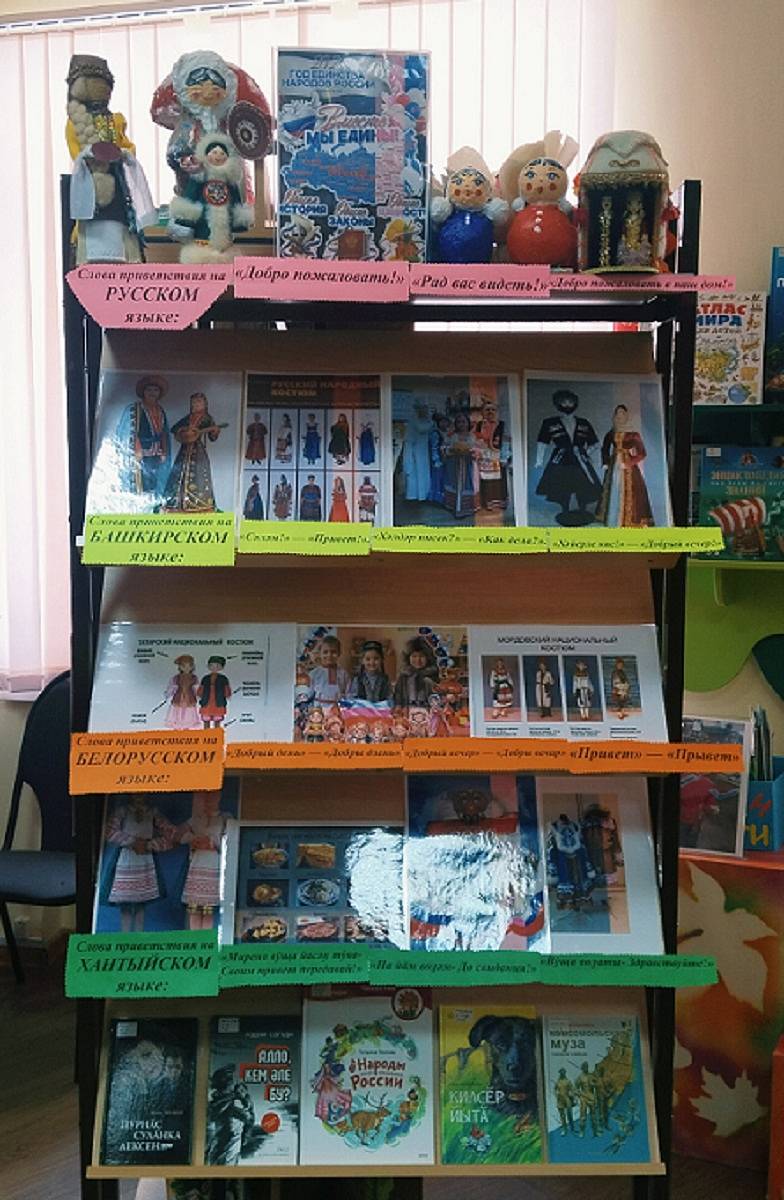 На выставке представлены книги о достопримечательностях российских городов, о традиционных блюдах разных народов, национальной одежде, книги рассказывают о традициях, обычаях, обрядах и праздниках народов, проживающих в России. Красочные иллюстрации помогают лучше понять и представить особенности традиционной культуры различных этнических групп.