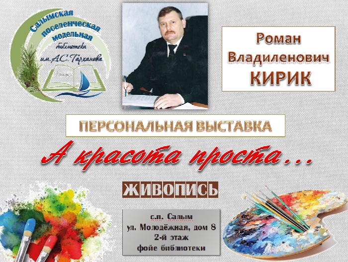 В Салымской поселенческой модельной библиотеке им. А.С. Тарханова экспонируется персональная выставка начинающего самодеятельного художника Романа Владиленовича Кирик.