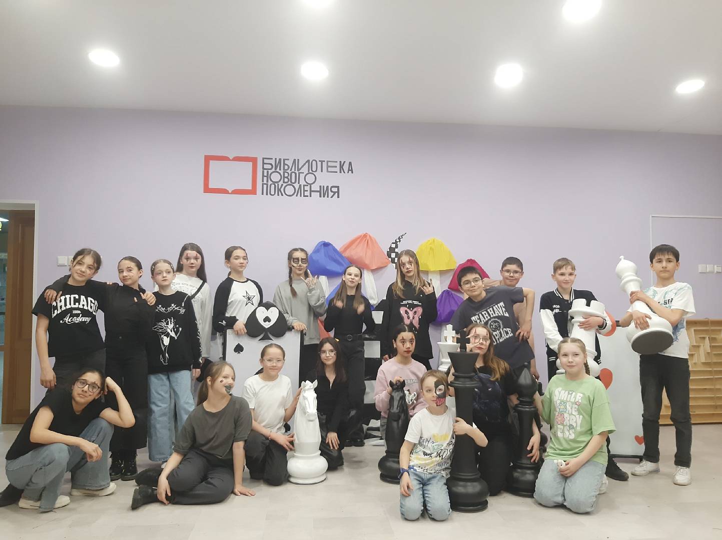 Дети очутились в лабиринте Страны чудес, где всех ждал увлекательный квест, состоящий из шести станций. Детская библиотека с большой выдумкой и фантазией подошла к оформлению фотозоны. На открытии мероприятия всех встречала веселая компания со Шляпником, Кроликом, Чеширским котом и Алисой за чаепитием.