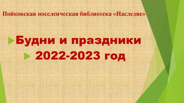 В преддверии профессионального праздника Общероссийского дня библиотек предлагаем вам, наши уважаемые читатели, друзья познакомиться с некоторыми моментами жизни Пойковской поселенческой библиотеки «Наследие» в 2022 -2023 году. Коллектив библиотеки «Наследие» хотя и небольшой, но многогранный и объединяет нас всех библиотечная профессия. И мы гордимся этим. Возможно, наш труд малозаметен, однако он необходим.