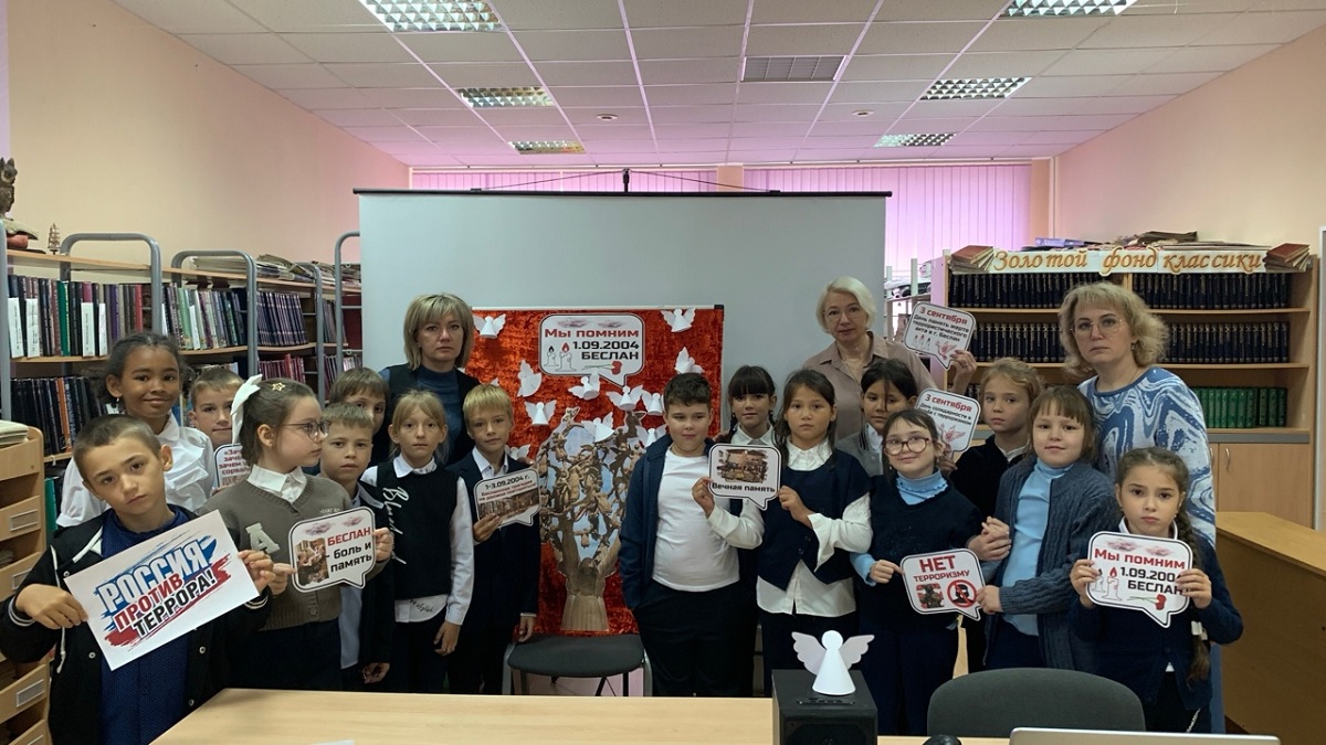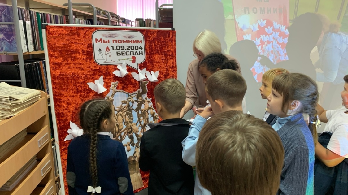Во время беседы особое внимание было уделено страшной трагедии в г. Беслане с 1 по 3 сентября 2004 года. Библиотекарь рассказала о чудовищной гибели бесланских детей, жестокости и бесчеловечности террористов, о тяжелом испытании, выпавшем на долю родных и близких погибших. Специально подготовленная презентация, сопровождаемая видеоматериалами, позволила ребятам проследить хронологию событий, начиная с трагического захвата школы террористами и заканчивая освобождением заложников.