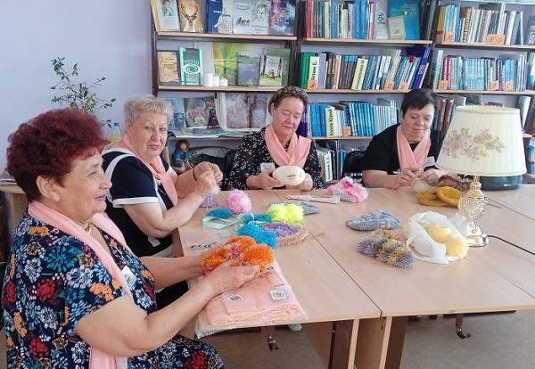 Из подготовленного материала: цветные нитки, спицы, крючки предстояло освоить технику вязания красивых и оригинальных тапочек, носков и даже пинеток. А поделилась своими секретами вязания наша участница Тальберг Нина Викторовна. Творческая работа наших мастериц «закипела» в руках. Азарт, интерес, увлеченность помогли всем быстро освоить технику данного вязания.