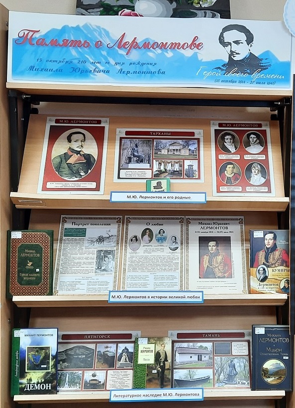 В Лемпинской поселенческой библиотеке им. Е.Д. Айпина состоялась интерактивная игра - литературное лото для старшеклассников «Лемпинская СОШ», посвящённая творчеству русского поэта, прозаика, драматурга художника - Михаила Юрьевича Лермонтова. Заведующая библиотекой, Комарова Ольга Валентиновна, подготовила книжно - иллюстрированную выставку «Память о Лермонтове», на которой представлена литература о жизни и творчестве поэта, его произведения и портреты самого Михаила Юрьевича. Из увлекательного рассказа учащиеся узнали о том, где родился Лермонтов, кем были его родители, как он рос, где учился, какое стихотворение принесло известность, признание и всенародную славу. Учащиеся вспомнили свои любимые стихотворения «Парус», «Бородино», «Смерть поэта», «Выхожу один я на дорогу», «Ветка Палестины» и др.