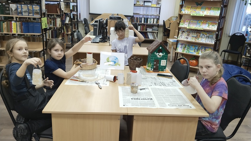 Экологический клуб «Капелька», совместно с библиотекарем Сентябрьский поселенческой библиотеки №1 продолжают заботится в холодную зимнюю погоду о друзьях наших пернатых, птицах.