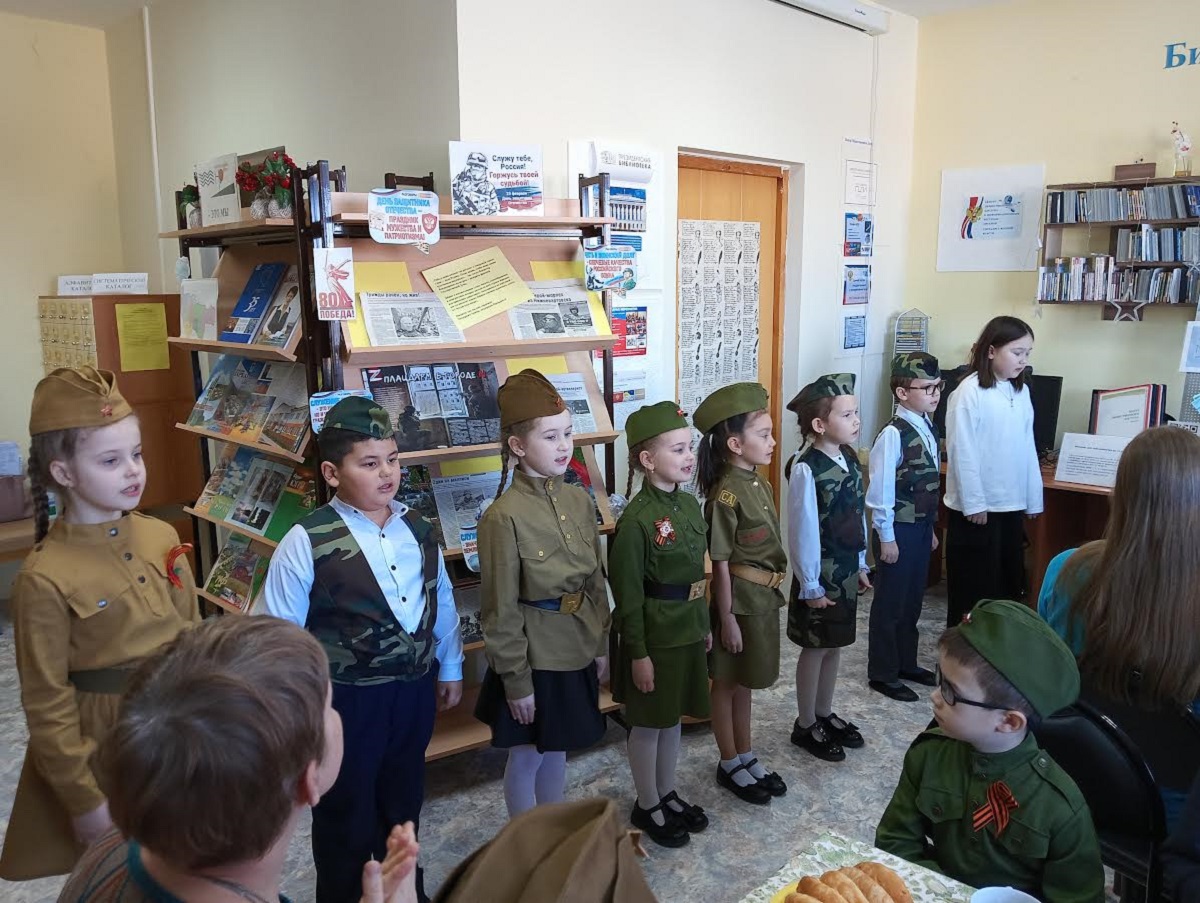 К сегодняшнему мероприятию в нашей библиотеке оформлена выставка «Служу тебе, Россия! Горжусь твоей судьбой!» на которой представлены статьи о специальной военной операции. Библиотекарь провела обзор книжной выставки и поздравила всех мужчин с праздником 23 февраля. Во все времена поддержкой для солдата была и остаётся песня. В преддверии Великого дня Победы в Каркатеевской поселенческой модельной библиотеке звучала песня «Катюша» под аккомпанемент Савелия Цыпушкина.