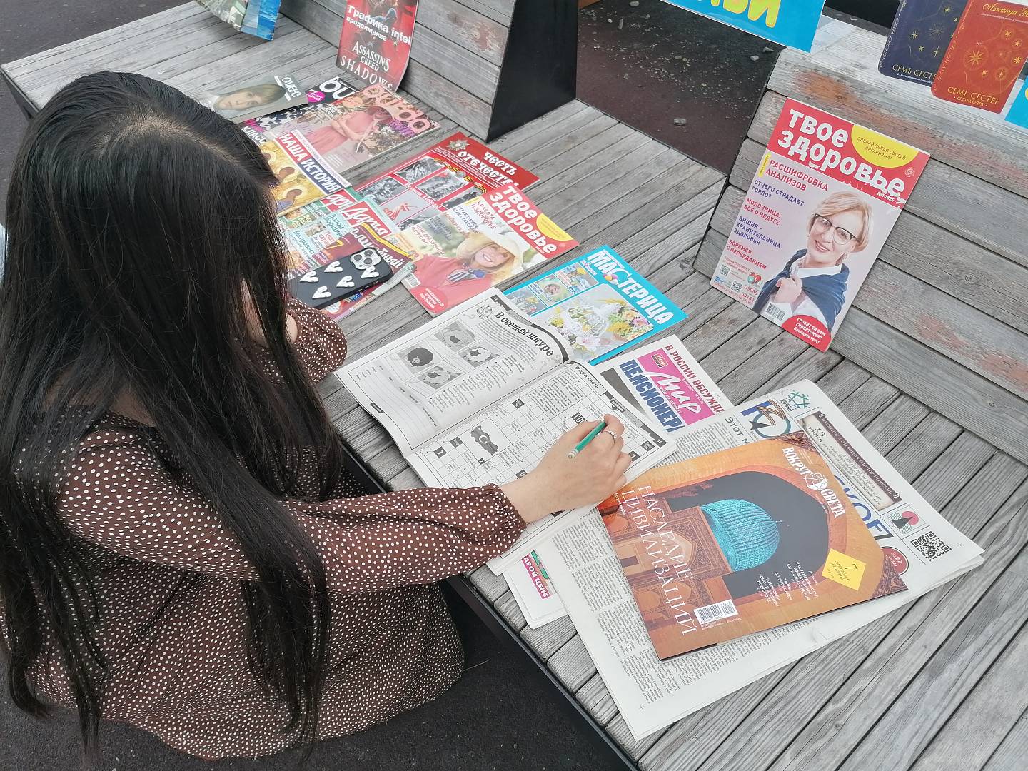 Что почитать? Выбор газет и журналов большой для взрослых и молодежи. "Наша история", "Честь Отечества", "Вы и ваш компьютер", "Бурда", "Дарья", "Юрист пенсионеру", "Вокруг света", "Мир пенсионера", "Волшебный", "Смена", "Мне-15", «Ромео и Джульетта», местная газета - "Югорское обозрение». Любители кроссвордов, с удовольствием, их отгадывают из журнала "1000 кроссвордов". Отмечают это занятие как замечательную гимнастику для ума.