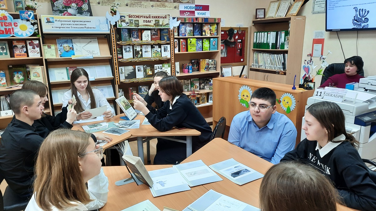 Ребята акцентировали внимание и увидели разнообразие техник рисования, которые использовал в своей творческой деятельности Геннадий Райшев. Для просмотра графических работ был предоставлен набор открыток «Геннадий Райшев. Графика» и книжные иллюстрации, рисунки по мотивам произведений русской классики, все это свидетельствует о широчайшем диапазоне объектов и явлений, которые находятся в поле зрения художника, а также о широчайшем диапазоне его профессиональных возможностей.