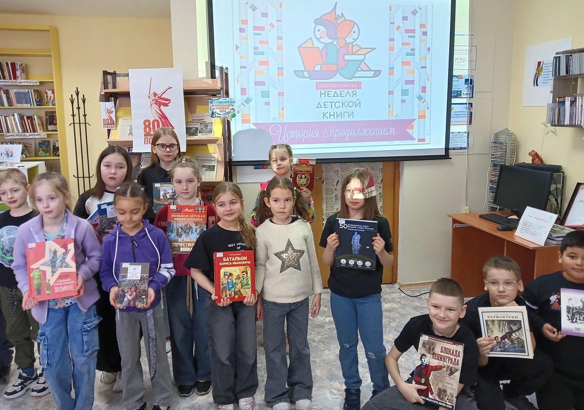 Каркатеевские дети приняли участие в ежегодной общероссийской Неделе детской книги. Для них были организованы мероприятия разных форм и тематик. Патриотическим часом «Война – жесточе нету слова» мы подержали единую тему Недели этого года «История с продолжением». После беседы о значимости Победы в Великой Отечественной войне ребята прослушали рассказ Анатолия Митяева «Носов и Назе» с последующим обсуждением: охотно отвечали на вопросы и высказывали свои суждения о бедах, причинённых фашистами нашей стране.