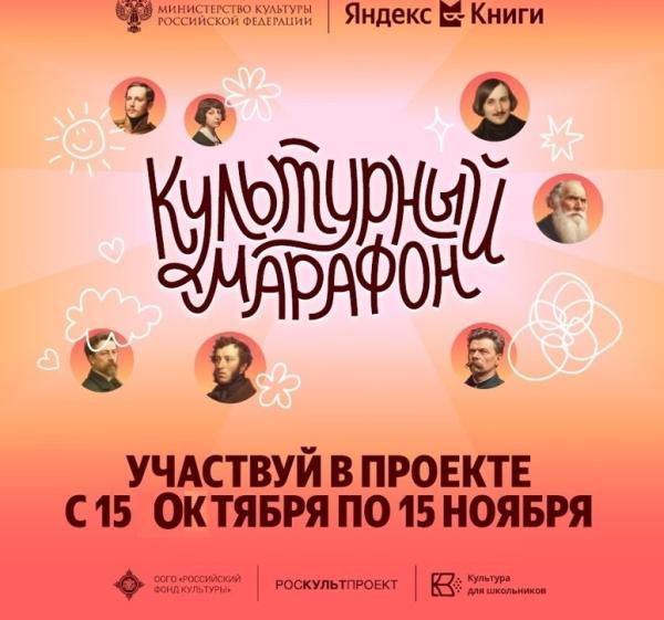 Министерство культуры Российской Федерации совместно с компанией «Яндекс» и сервисом «Яндекс Книги» запускает очередной «Культурный марафон», который поможет школьникам по-новому взглянуть на великие произведения русской и мировой литературы.