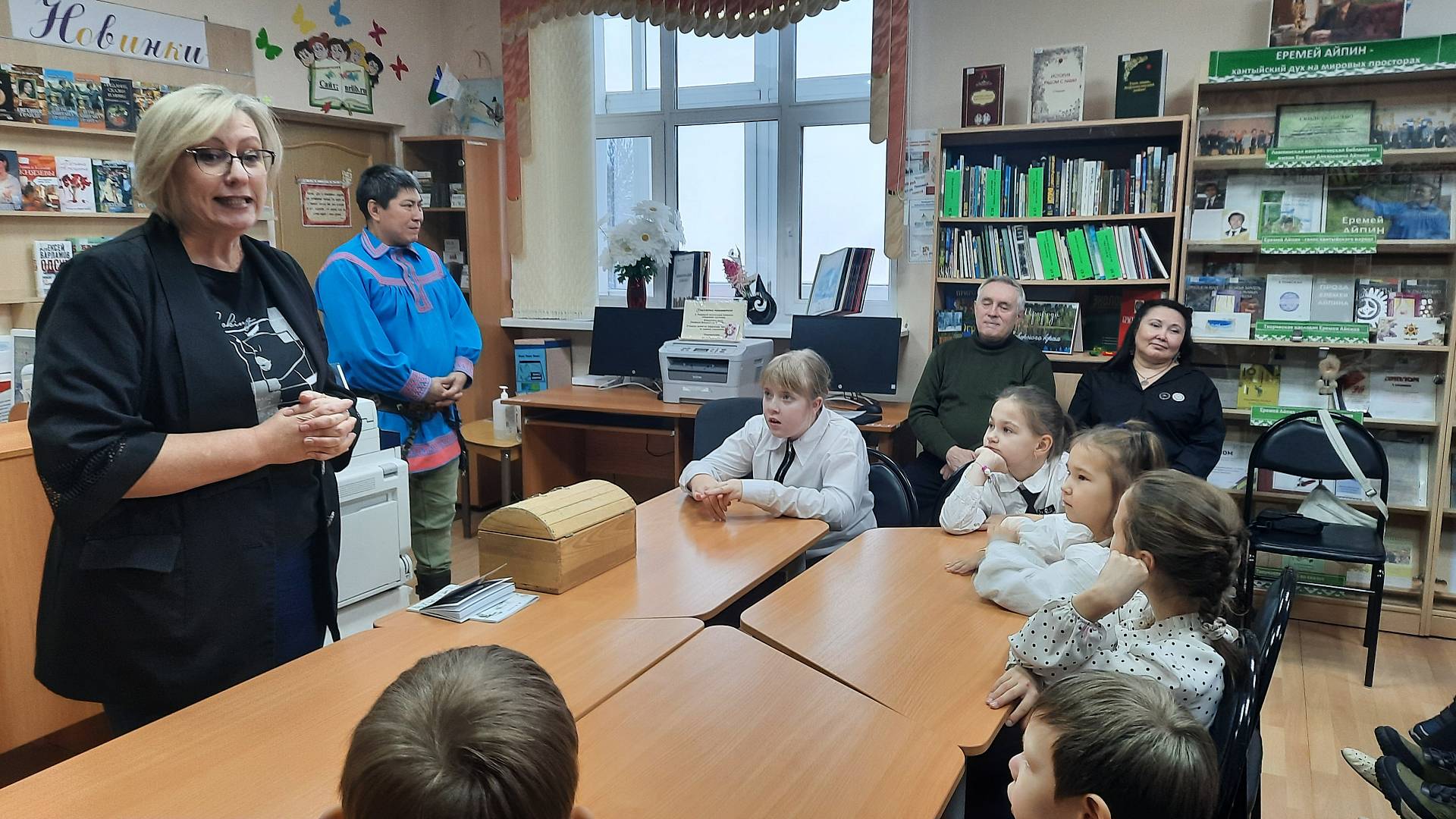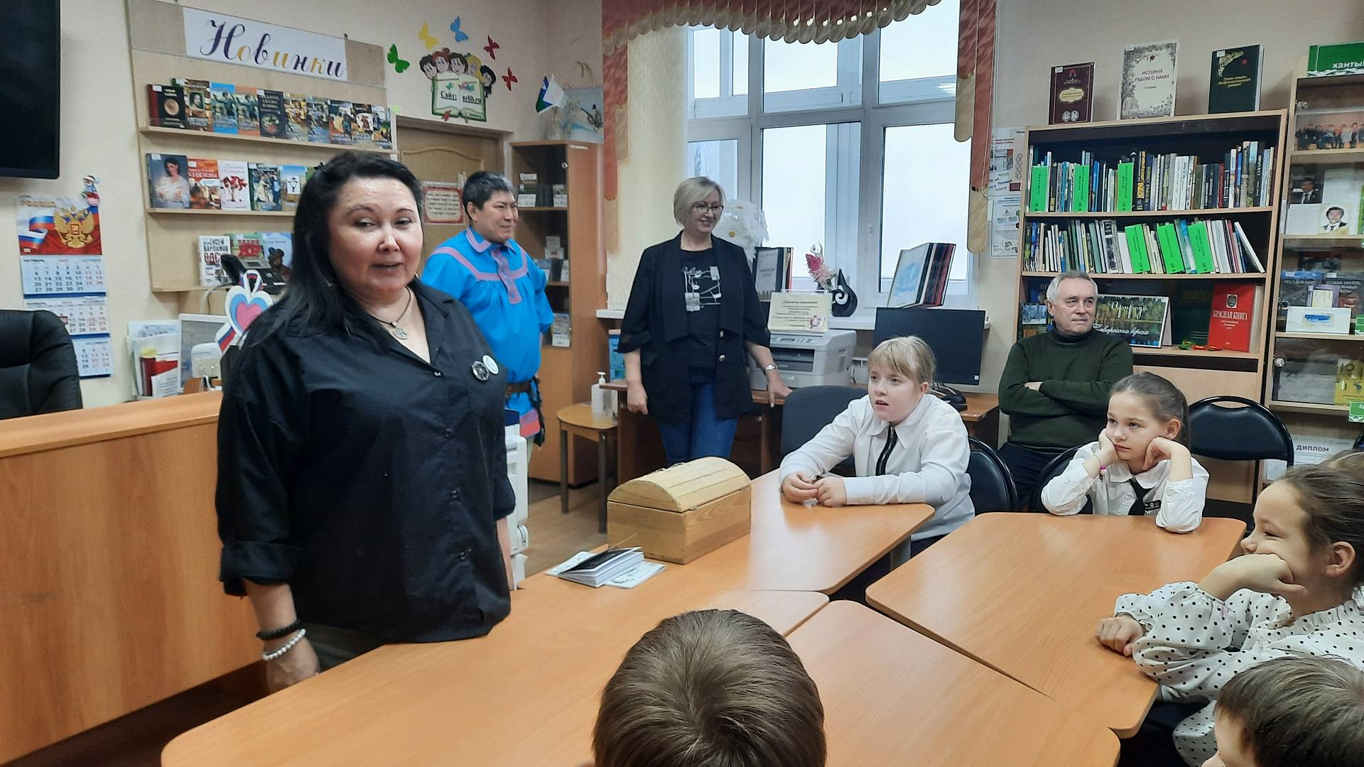 Алла Романовна Иштимирова‑Посохова – актриса драмы театра обско‑угорских народов «Солнце», краевед, библиотекарь, писатель и поэт. Она прочитала детям несколько стихотворений, пронизанных любовью к родной земле.