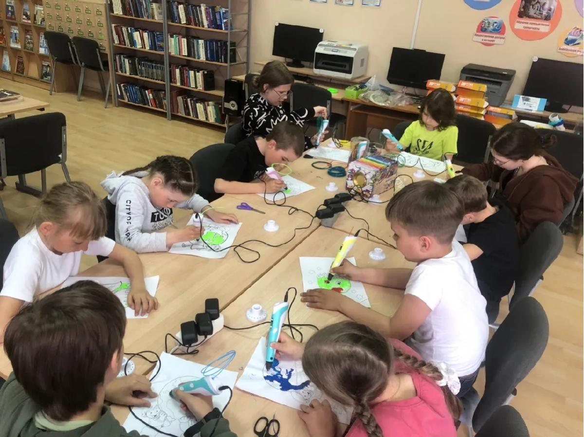 Под руководством библиотекаря и наших помощников библиотеки-волонтеров Кристины и Вероники ребята с помощью 3D ручки раскрашивали раскраски на тему планета Земля.