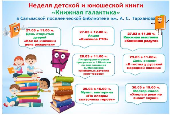 На каникулах - в библиотеку!!! Салымская поселенческая модельная библиотека им. А. С. Тарханова приглашает своих юных читателей провести весенние каникулы в библиотеке!