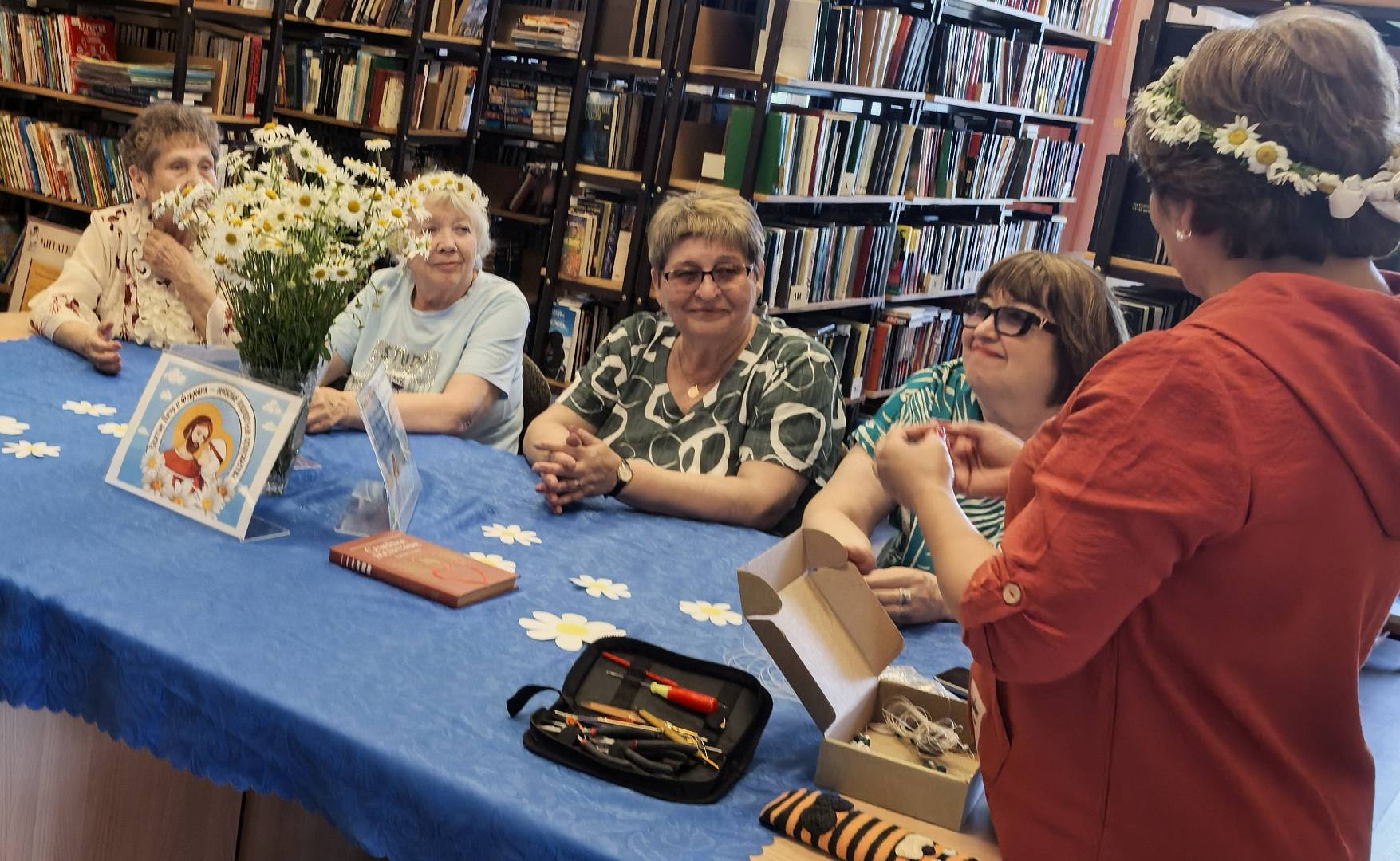 Обь-Юганская поселенческая библиотека присоединяется к районной акции, посвященной Дню семьи, любви и верности. В творческом союзе с БУ «Нефтеюганский районный комплексный центр социального обслуживания населения» филиала Каркатеевы (п. Юганская Обь) мы организовали мастер-класс «Ромашковое настроение». Инструктор по труду Г.Р. Кубикова предложила сделать своими руками символ этого праздника, милую брошь – ромашку. По завершению мастер – класса, благодаря «золотым ручкам» Гульнары Равиловны, у каждого участника получилась своя замечательная брошь - символ чистоты, нежности и любви. Все броши- ромашки получились уникальными, отражая индивидуальность участников, совместное рукоделие наполнило атмосферу мероприятия теплом и радостью. Все присутствующие зарядились положительной энергией и получили массу незабываемых эмоций.