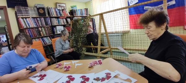 25 апреля библиотекарь совместно с обществом инвалидов украшали окна символами Великой Победы – георгиевскими лентами, красными гвоздиками, вырезали трафареты из бумаги, делали красочные аппликации, каждый проявлял фантазию по-своему.