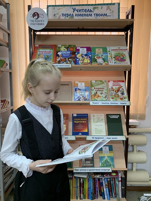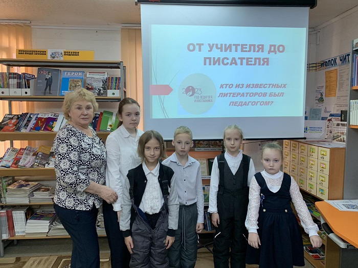 2023 год для российского образования особенный. Указом Президента РФ от 27 июня 2022 года он объявлен Годом педагога и наставника. В рамках этого события в Усть-Юганской поселенческой библиотеке для учащихся 4 класса Усть-Юганской СОШ состоялся познавательный час «От учителя до писателя». Учитель – это больше чем профессия, это настоящее призвание, потому как педагог не только учит и поучает, но и воспитывает, вдохновляет. А еще многие писатели, которых мы хорошо знаем, когда-то были педагогами. Их педагогический опыт даже лег в основу многих произведений. Так кто же из знаменитых писателей сидел за учительским столом, готовился к лекциям, ходил по урокам, проверял тетрадки? Сегодня заведующая библиотекой рассказала детям о великом призвании учителя, наставника и значимости профессии педагога. В сопровождении слайдовой презентации, ребята познакомились с биографией и трудами русских писателей, занимавшихся педагогической деятельностью: Л.Н. Толстого, К.Д. Ушинского, П.П. Бажова, В.В. Бианки, П.П. Ершова, Б. С. Житкова, И.А. Крылова, В.А. Осеевой. Детьми были прочитаны вслух рассказ Льва Николаевича Толстого «Лев и собачка», басни Ивана Андреевича Крылова. Роль педагога в наше время велика как никогда. А библиотеки всегда были и будут надежными партнерами образовательных учреждений. В рамках Года педагога и наставника в нашей библиотеке оформлена книжная выставка «Учитель, перед именем твоим…». Книги, представленные на выставке раскрывают образ педагога, отражают наследие выдающихся педагогов, помогают расширить представление о профессии учителя, мудрого советника, искреннего помощника и наставника.