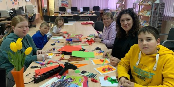 В Салымской поселенческой модельной библиотеке им. А.С. Тарханова состоялся творческий мастер-класс по изготовлению открытки ко Дню Победы. Участниками стали дети и взрослые семейного клуба «Традиция».