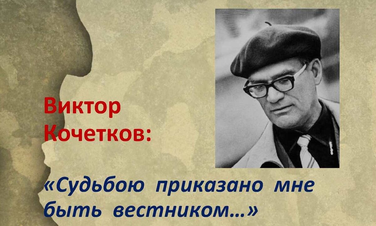Виктор Иванович Кочетков - поэт, поэт-фронтовик, прозаик, критик, переводчик, лауреат Международной премии им. М. А. Шолохова в области литературы и искусства (1993), Государственной премии республики Саха (Якутия) имени А. Е. Кулаковского (1995), премии им. А. С. Пушкина, Конгресса русских общин Молдовы, участник Великой Отечественной войны, участник боёв на Курской дуге и на Белгородчине.