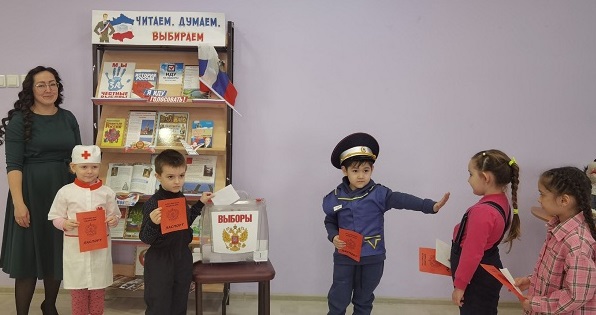 24 апреля 2023 года в рамках мероприятий, посвященных Дню Молодого избирателя, воспитанники старшей группы НРМ ДОБУ «Центр развития ребенка –детский сад «Теремок» вместе с воспитателями побывали на избирательном участке, где выбрали Президента Сказочного леса.