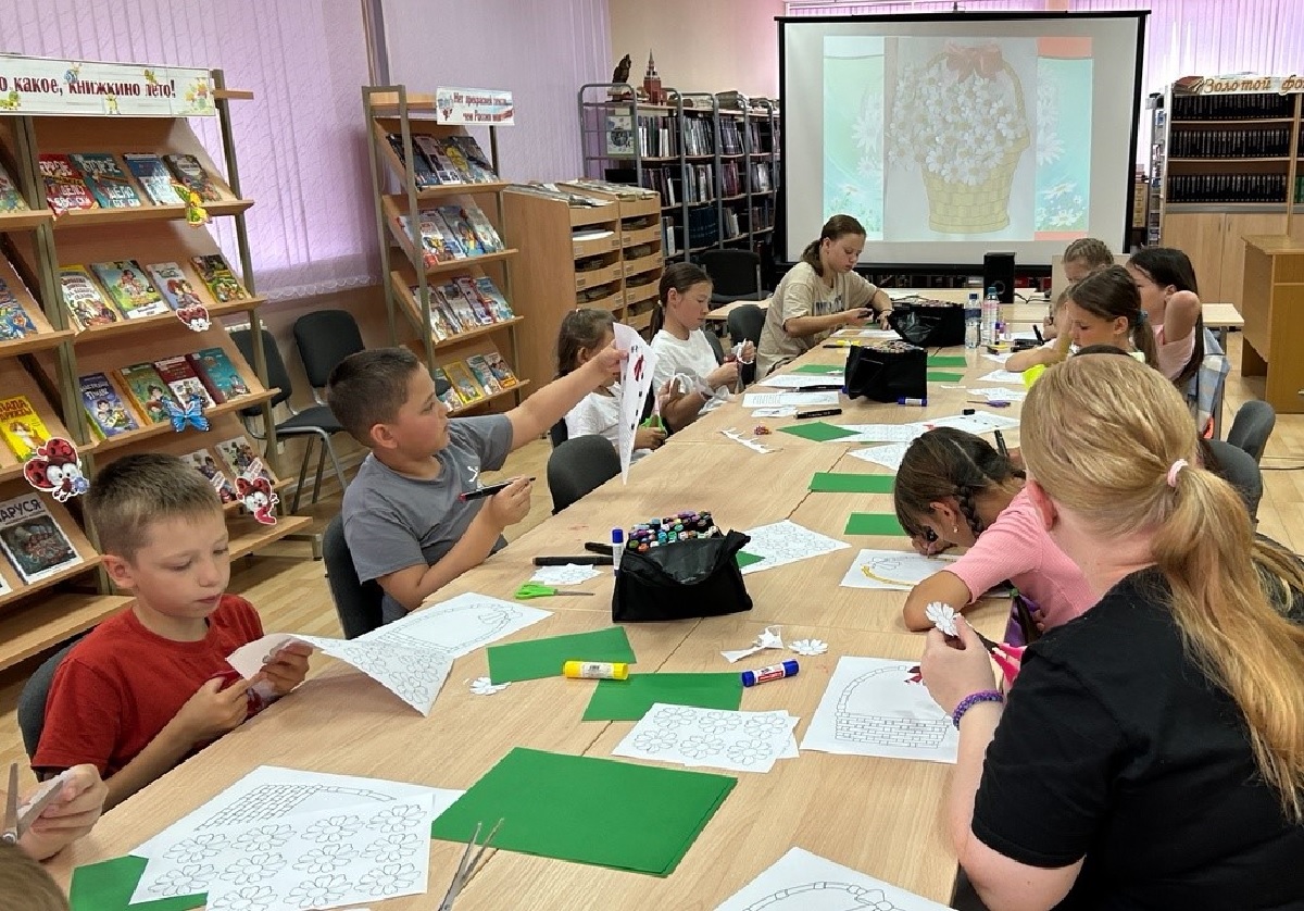 Ромашка стала символом этого праздника, и детям предложили проявить творчество — сделать корзину с ромашками и подарить её своим близким.