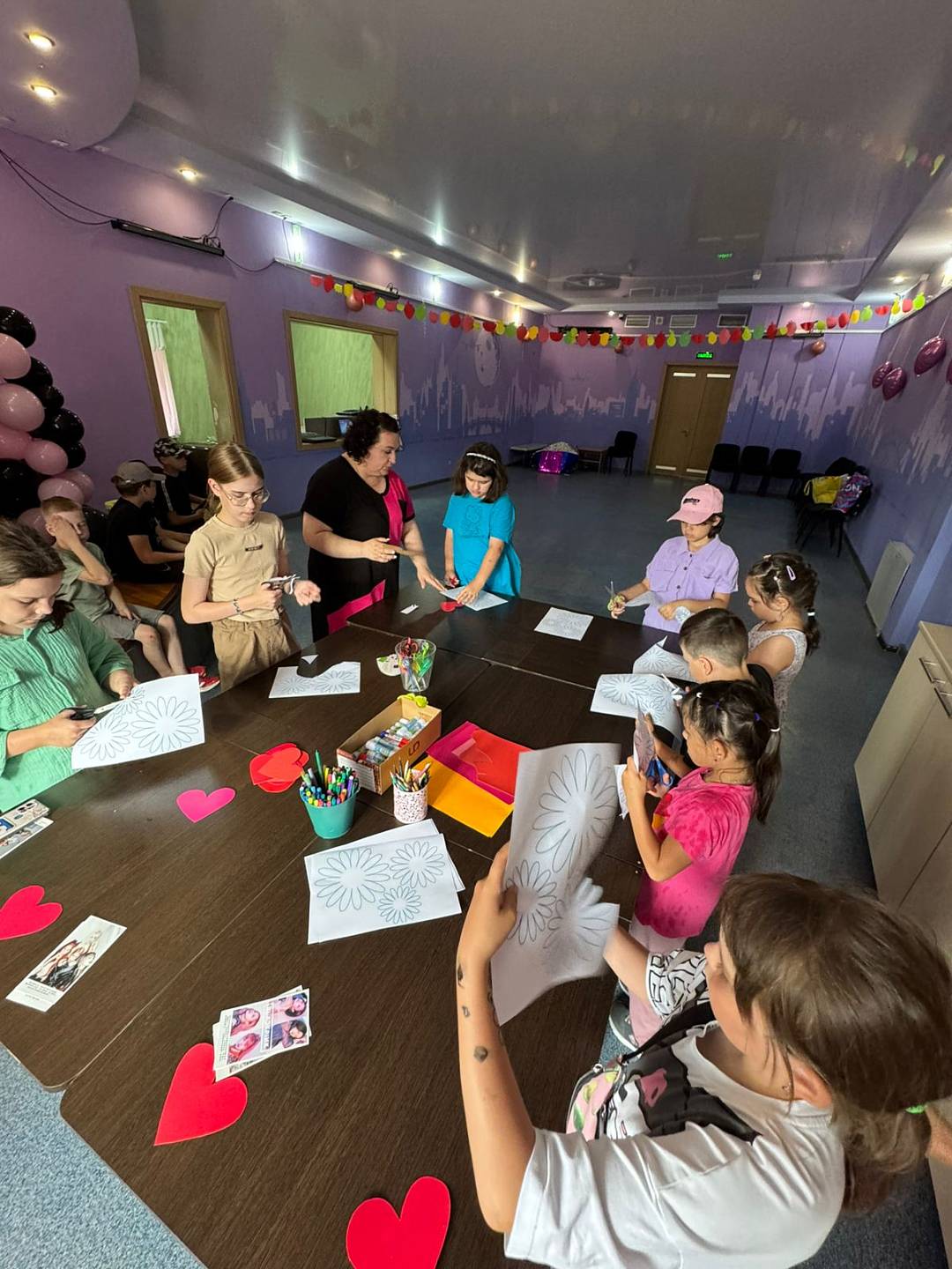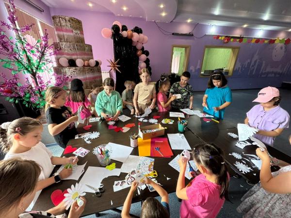 Ребятам было предложено заняться творчеством — сделать ромашку в подарок своим родителям. Итак, карандаши, бумага, ножницы, клей на столе... Дети узнали, как из простых материалов сделать своими руками ромашку. Начиная мастер-класс, детям рассказали о жизни одной замечательной семьи: семьи Петра и Февронии и почему именно с именами этих святых связан этот День семьи, любви и верности, а также познакомились с произведениями разных авторов о семье.