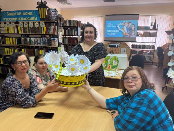 Ежегодно 8 июля отмечается всероссийский праздник – День семьи, любви и верности. В преддверии этой даты для НРОО ВОИ Сентябрьская поселенческая библиотека №1 провела мастер – класс «Ромашковое настроение» по изготовлению ромашек из бумаги. Участники с большим интересов мастерили разнообразные ромашки, а еще на каждую ромашку была приклеена надпись, олицетворяющая этот замечательный праздник. По окончанию мастер- класса у нас получилась большая ромашковая корзина. А так же присутствующие узнали о том, как ромашка стала символом праздника.
