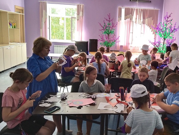 Ребята с удовольствие вырезали ромашки, библиотекарь Иванова Анастасия с удовольствием рассказала историю возникновения праздника: Всероссийский праздник 8 июля – День семьи, любви и верности – появился благодаря муромскому князю Петру и его жене Февронии, которые жили в XIII веке. Эту семейную пару православные христиане почитают как покровителей семьи и брака. Петр и Феврония стали образцами супружеской верности, взаимной любви и семейного счастья ещё при жизни. По легенде, они умерли в один день — 25 июня (по новому стилю — 8 июля) 1228 года.