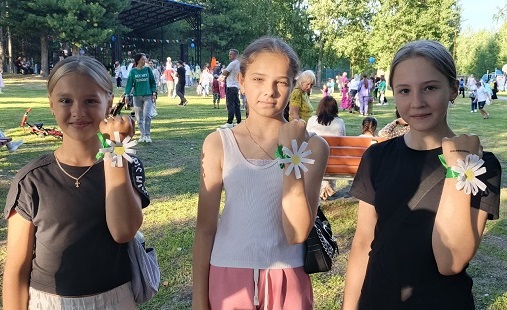В рамках празднования Дня семьи, любви и верности детская библиотека «Радость» решила внести свой вклад в праздничный вечер, проходивший в парке "Югра". Сотрудница библиотеки организовала специальный мастер-класс, в ходе которого все желающие смогли создать уникальные браслеты ромашки — символа праздника.