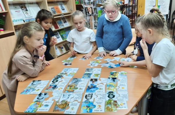 Заведующая библиотекой Ольга Комарова подготовила увлекательные загадки и литературно-игровые пазлы по авторским сказкам. Участники игры с большим азартом и увлечением отгадывали загадки и собирали пазлы, которые состояли из автора и названия произведения, иллюстрации, портрета автора и героев сказок. Из четырех пазлов должна сложиться правильная картинка.