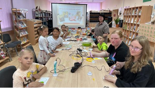 В завершении библиомарафона для ребят был проведен творческий мастер-класс 3Д ручкой по изготовлению юбилейной медальки для книжек.