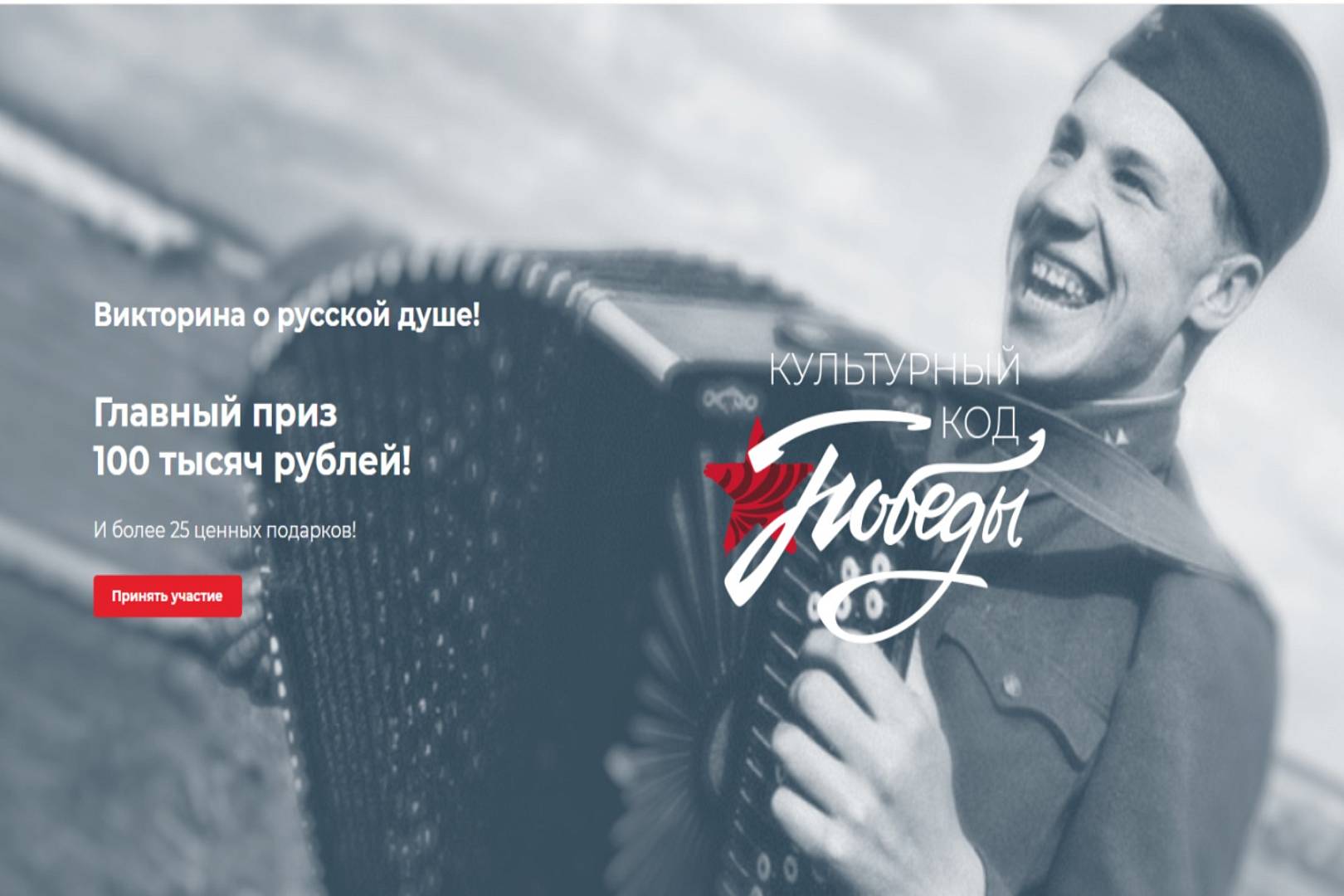 Стартовала викторина «Культурный код Победы», инициатором которой является региональное отделение партии "Единая Россия" (https://гармония86.рф/ ). Приняв в ней участие, можно проверить свои знания и узнать интересные факты, связанные с историей, искусством и культурой Югры и России.