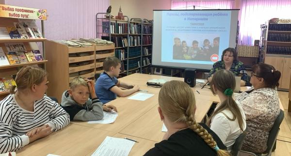 В начале встречи библиотекарь рассказала, что такое Интернет, перечислила опасности глобальной сети, какие основные правила должен знать ребенок и взрослый перед началом самостоятельной работы в сети, как защититься от мошенничества.