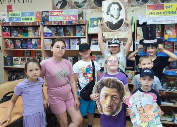 Первоначально ребята познакомились кратко с биографией Александра Сергеевича Пушкина у книжной выставки «Всё в нём Россия обрела». Затем с весёлым настроем участвовали в литературно-сказочной игре по сказкам Пушкина, где было очень много интересных и весёлых игровых заданий в которой соревновались две команды. В ходе игры дети показали отличные знания творчества великого русского писателя. Завершилось мероприятие чтением стихотворений Александра Сергеевича Пушкина и фотоссесией с его портретами.