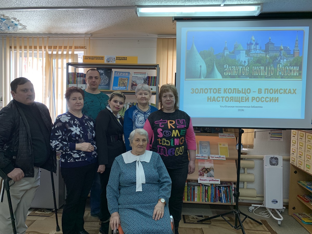 В Усть-Юганской поселенческой библиотеке для первичной ячейки ВОИ п. Усть-Юган состоялась экскурсия-обзор «Золотое кольцо – в поисках настоящей России». Владимир и Кострома, Переславль-Зелесский и Сергиев Посад, Суздаль и Ярославль — эти и еще ряд других городов, соединенных автомобильными дорогами, разместились вокруг Москвы, сформировав символическое кольцо. Золотое кольцо России! Эти населенные пункты стали олицетворением культурного наследия нашей страны, ведь почти в каждом из них есть достопримечательности, ставшие объектами Фонда Всемирного наследия ЮНЕСКО.