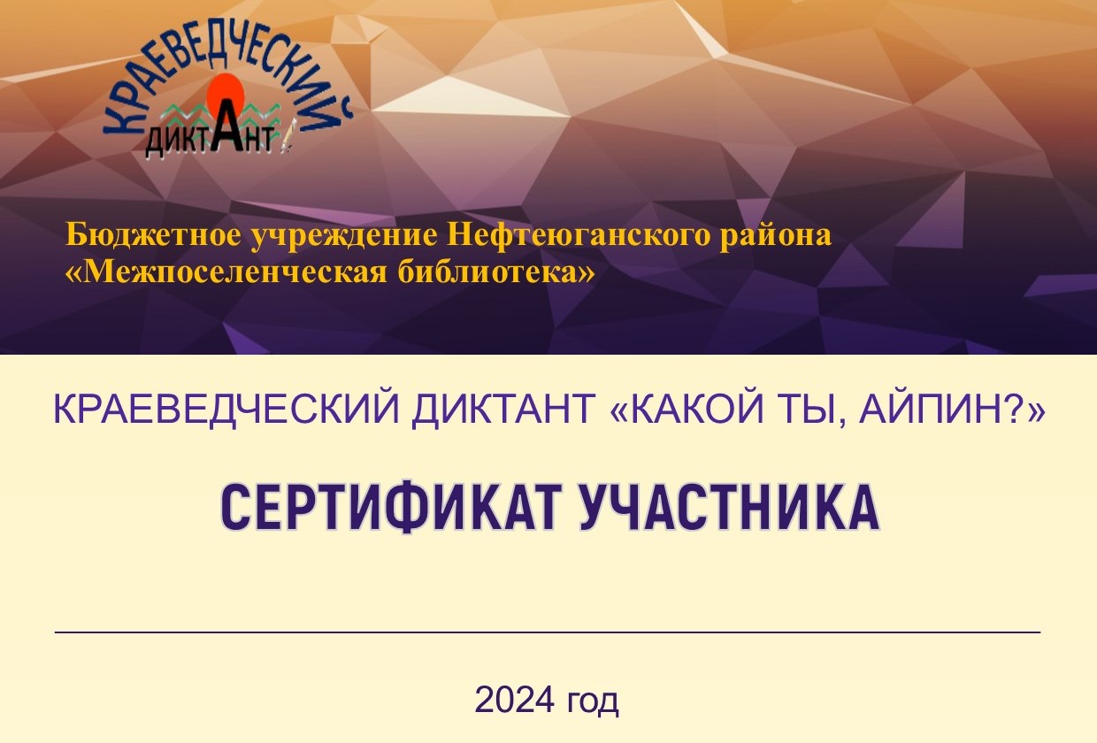 Со 2 по 6 декабря 2024 года пройдет культурно-просветительская акция – краеведческий диктант «Какой ты, Айпин?». В этом году проводится в рамках празднования 76-летия Еремея Даниловича Айпина и Дня образования Ханты-Мансийского автономного округа – Югры.