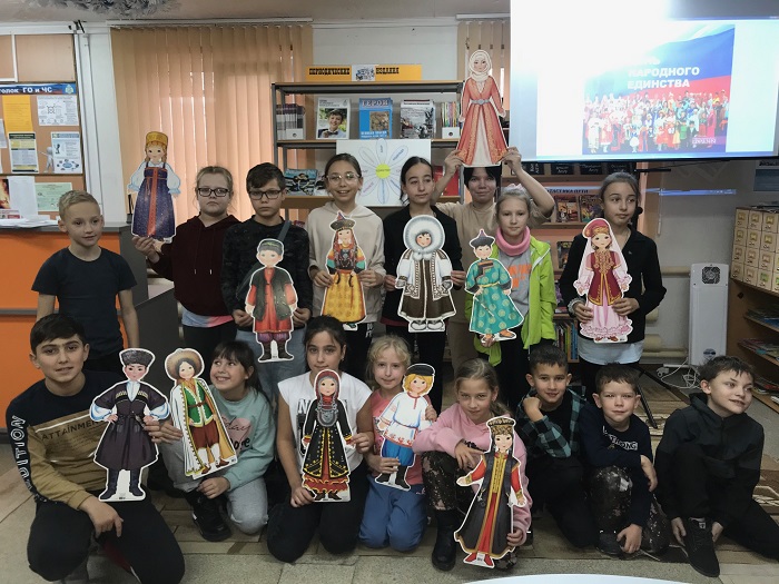 C 1 по 3 ноября 2022 года Пойковская поселенческая детская библиотека «Радость» организовала и провела комплекс конкурсно-игровых программ – «Народов много, страна одна!», посвященных предстоящему празднику – Дню народного единства. К нам в гости приходили ребята из БУ «Нефтеюганский реабилитационный центр», МОБУ «Средняя общеобразовательная школа №1», НРМОБУ «Пойковская средняя общеобразовательная школа №2», НРМ ДОБУ «Центр развития ребенка - детский сад «Родничок».