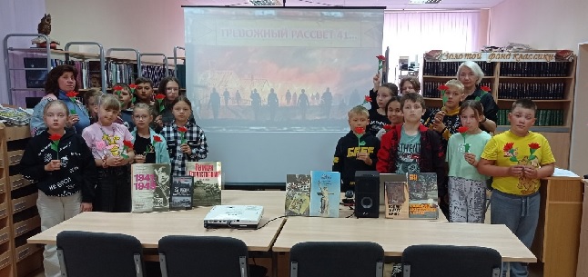 Сегодня – 22 июня в Салымской поселенческой модельной библиотеке им. А.С. Тарханова для ребят из пришкольного летнего оздоровительного лагеря СОШ № 1 прошел час памяти «Тревожный рассвет 41…»