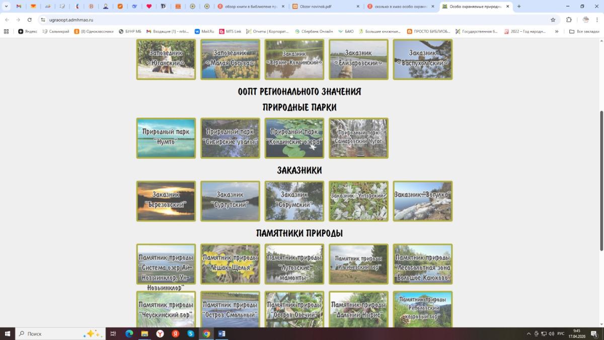 По данным на 2026 год, в Ханты-Мансийском автономном округе – Югре 26 особо охраняемых природных территорий (ООПТ) общей площадью около 2,6 млн гектаров.