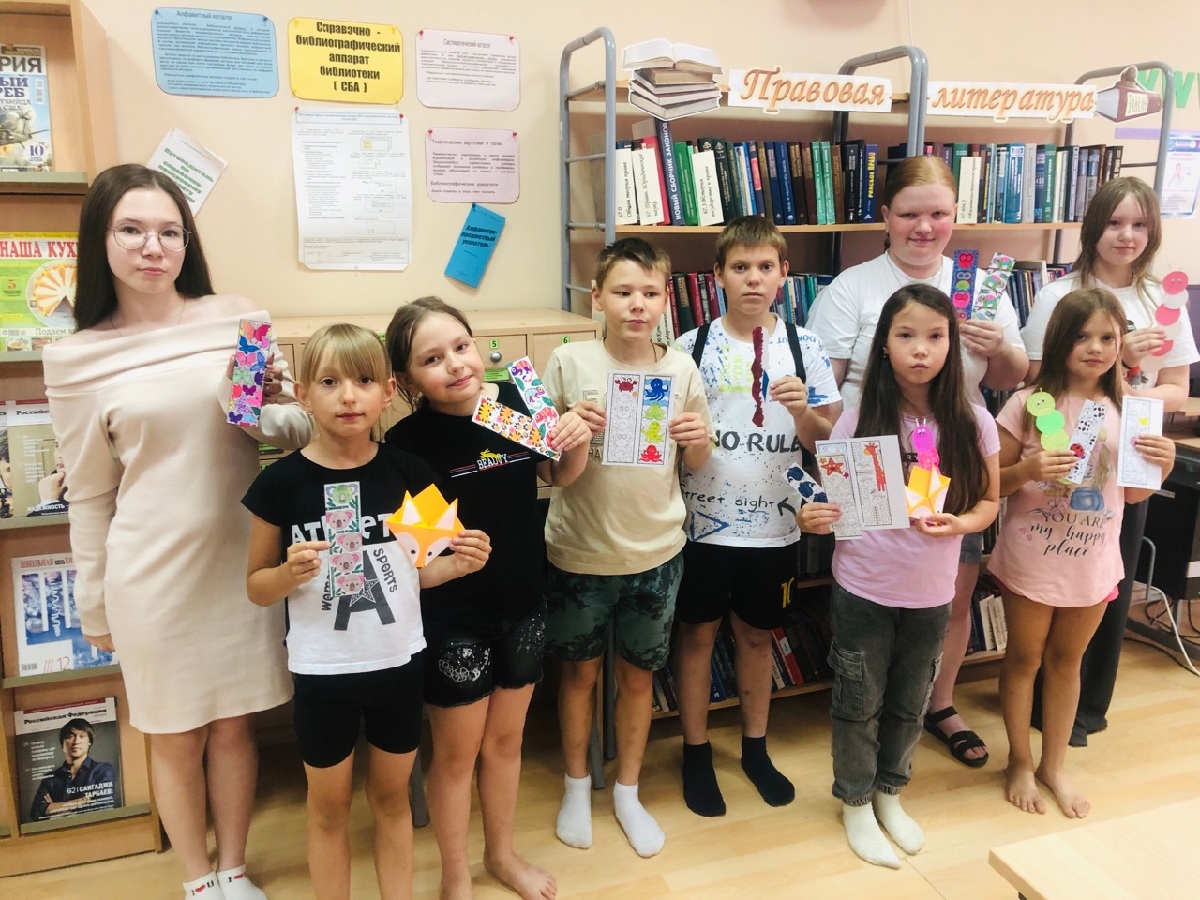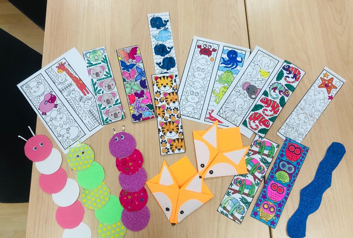 В заключении ребятам было предложено пофантазировать и изготовить закладку для книг. Они могли сделать закладку из разноцветной бумаги и картона, или сложить в технике оригами, или раскрасить готовые закладки антистресс.