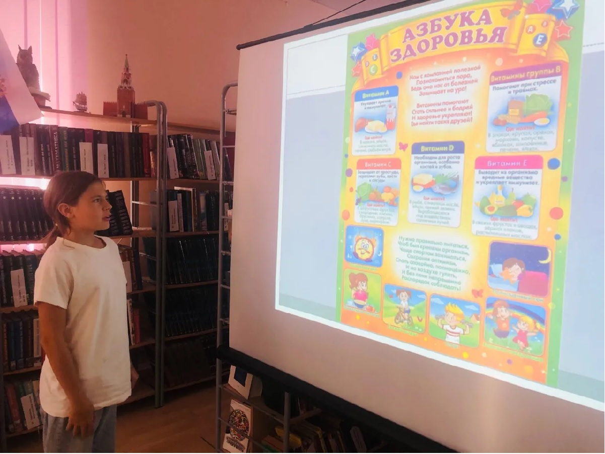 С помощью видеопрезентации библиотекарь рассказала о том, какое значение имеют в жизни каждого человека занятия физкультурой и спортом.
