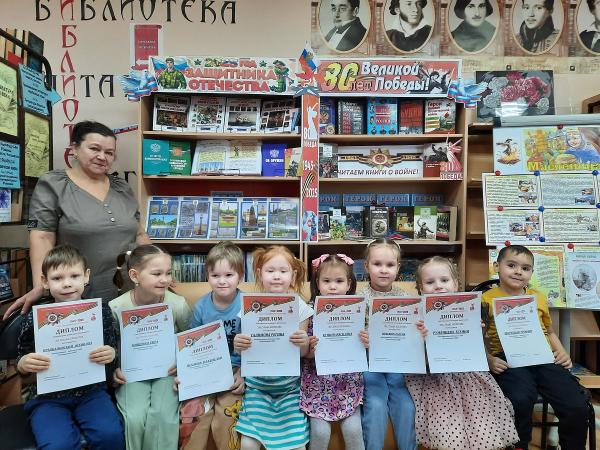 В течение экскурсии дети с воодушевлением знакомились с библиотекой разглядывали книги и задавали вопросы о книгах и сказочных героях. Они делились своими впечатлениями, рассказывали о любимых сказках и обещали вернуться в библиотеку снова. В завершении экскурсии ребятам вручили дипломы участника конкурса рисунков «На страже Отечества».