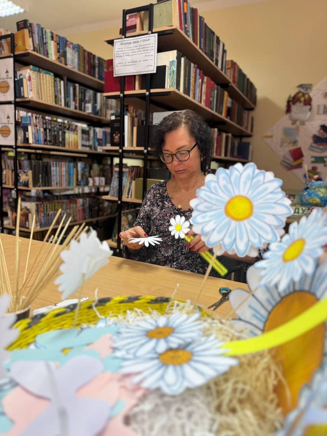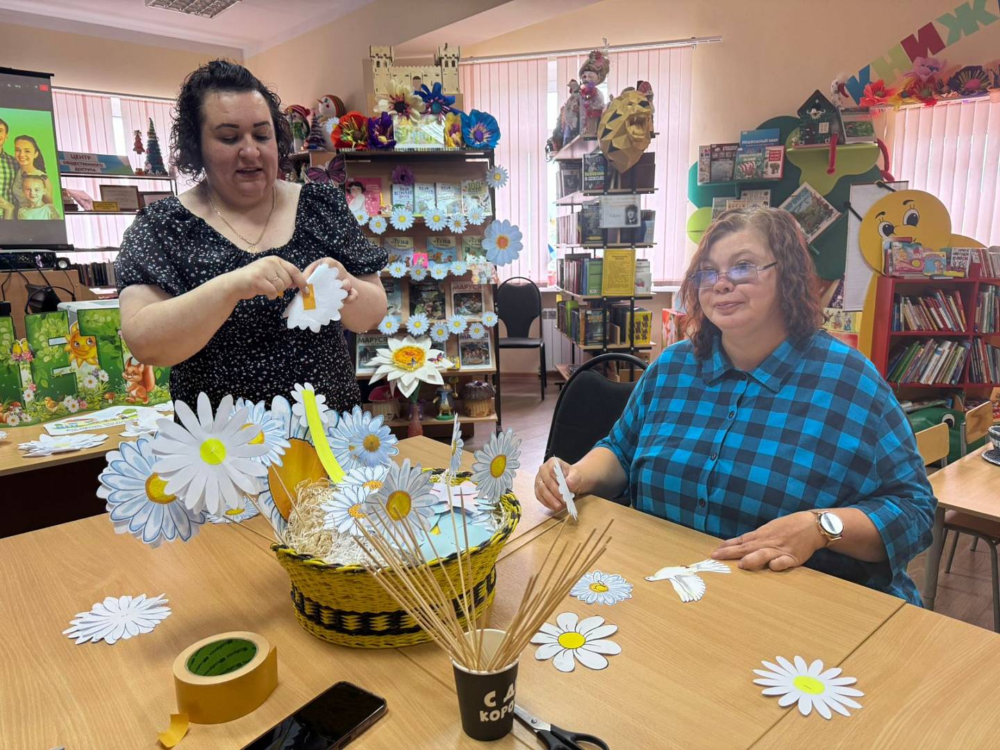 Ежегодно 8 июля отмечается всероссийский праздник – День семьи, любви и верности. В преддверии этой даты для НРОО ВОИ Сентябрьская поселенческая библиотека №1 провела мастер – класс «Ромашковое настроение» по изготовлению ромашек из бумаги. Участники с большим интересов мастерили разнообразные ромашки, а еще на каждую ромашку была приклеена надпись, олицетворяющая этот замечательный праздник. По окончанию мастер- класса у нас получилась большая ромашковая корзина. А так же присутствующие узнали о том, как ромашка стала символом праздника.