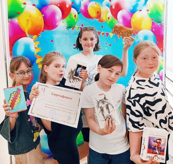 После заключительного чаепития, по итогам летней площадки кратковременного пребывания «Смотри, читай – Россию узнавай!» все посещающие получили памятные подарки и значки с символикой России, а главный приз (подарочный сертификат) разделили пять самых активных участниц площадки.