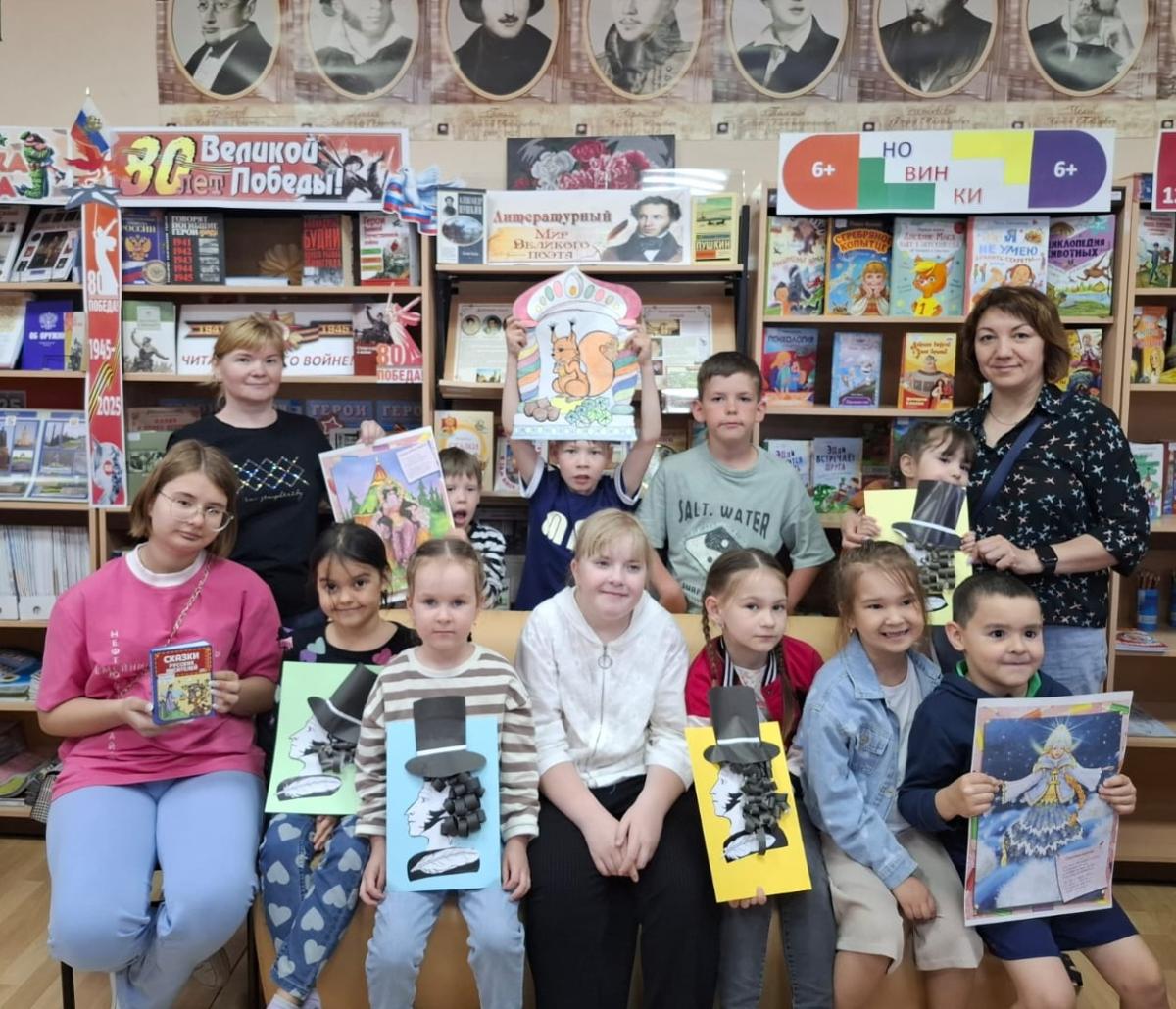 В рамках Пушкинских чтений для детей летнего пришкольного лагеря в библиотеке прошли мероприятия: сказочное лото «Герои из сказок Пушкина» и мастер-класс «У каждого свой Пушкин: портрет поэта».